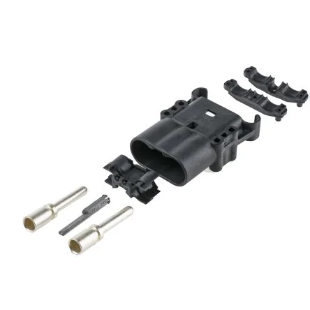 High-performance male battery connector with silver plated contacts for minimal voltage drop.