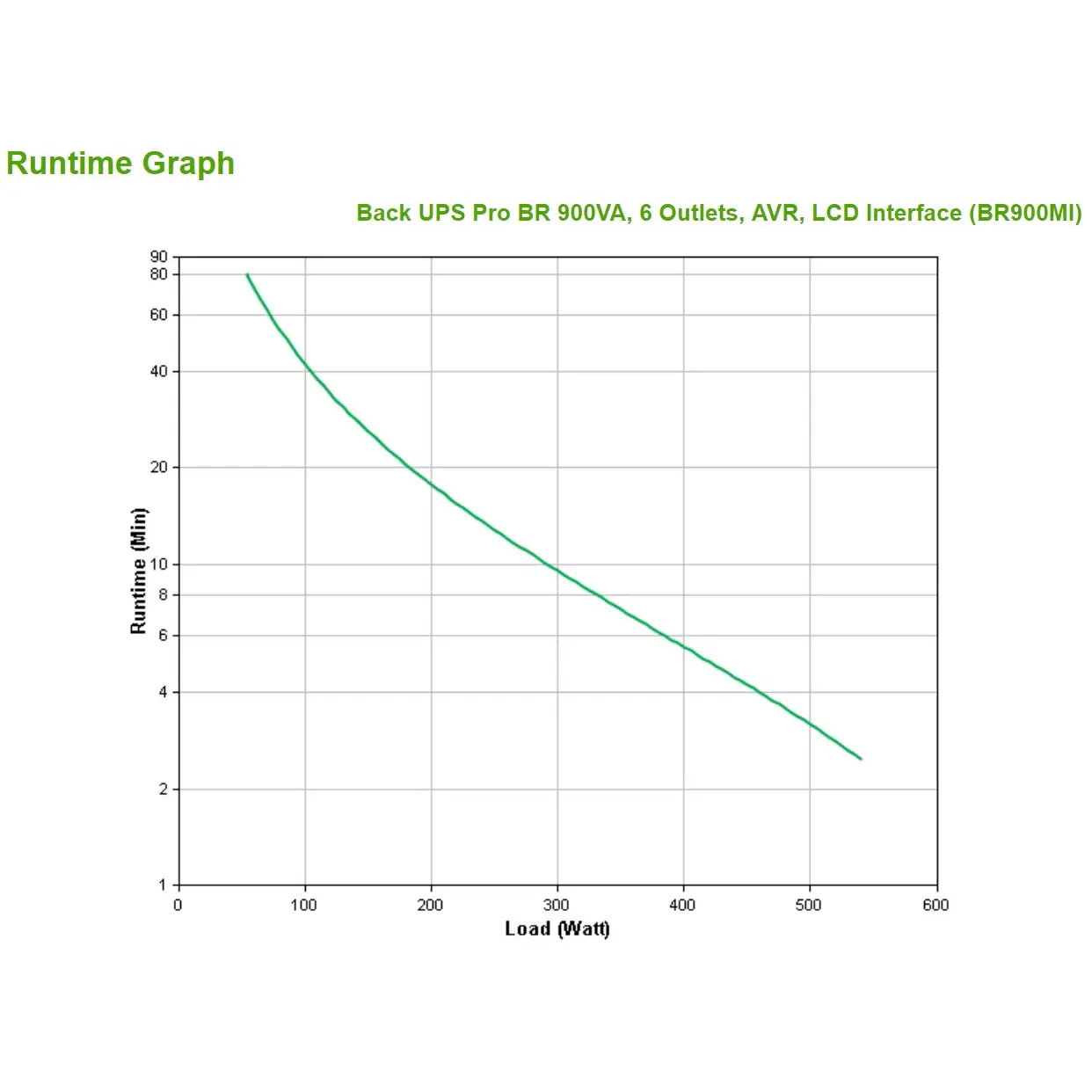 Security through emergency powerThe APC Back-UPS PRO BR900MI has a built-in battery that ensures that all connected equipment, such as a PC, NAS, router, modem and media box, continues to work if the power goes out. In addition, this APC emergency power supply can also automatically shut down a NAS or PC in time via the USB connection. Useful when the APC ups is almost empty. This prevents downtime, damage to equipment, and loss of data.Safety and convenienceIn addition, this safe APC Back-UPS PRO protects valuable equipment against peak voltage caused by lightning strikes, for example. With these UPS you can secure both your power and network connections (1Gbit). Because the APC Back-UPS PRO is also equipped with an LCD screen, it is easy to use.InsuranceDespite the high risk of lightning strikes and surges, APC has full confidence in its products and offers this APC Back-UPS:- Equipment protection policy of 150,000 eurosExtend the lifespanThe internal battery cartridge (APCRBC164) can be replaced easily, safely and independently by the user. This without having to switch off the APC BR900MI or connected equipment. This way you can easily and cheaply extend the lifespan of the APC Back-UPS.Warranty extensionThe factory warranty of the BR900MI is 3 years and can be upgraded to 6 years with the APC service pack (WBEXTWAR3YR-SP-01).Save on operational costsThe BR900MI features a customizable AVR, which extends battery life and maximizes runtime by correcting low and high voltages without discharging the battery. In addition, the UPS has Greenmode, a smart power-saving operating mode that optimally combines efficiency and protection. Furthermore, the emergency power supply has 6 Battery+surge protected outputs. PowerChute Serial Shutdown software and a USB cable are also included.
