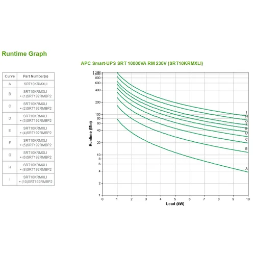 Stay always online and prevent data lossAn APC Smart-UPS On-Line always supplies perfectly clean power to all connected equipment thanks to its double conversion technology. Even power failures have no effect on this. The APC Smart-UPS On-Line then automatically supplies emergency power without having to switch. This prevents unwanted failure of, for example, a PC, server, storage or switch. With the included Powershute Network Shutdown software, you can even have critical IT hardware shut down automatically and in a controlled manner. This prevents data loss, downtime and physical damage to hardware.Extend the runtimeYou can easily increase the number of minutes that the APC SRT10KRMXLI can independently supply emergency power by connecting external battery packs (SRT192RMBP2). A runtime of several hours is even possible.AvailabilityThe Smart-UPS On-Line has an internal bypass and uses double conversion, which increases the availability and lifespan of connected hardware.SafetyIn addition, a Smart-UPS On-Line protects connected devices against peak voltage caused by lightning, among other things. This APC emergency power supply is ideally suited for business use.RackmountThe APC Smart-UPS SRT is easy to operate in the rack thanks to a tiltable graphic LCD screen. Thanks to the included 4-post rail kit, you can easily mount the UPS in a rack (6U).Manage your Smart-UPSThanks to the integrated network card, you can easily connect the APC UPS to the network. This allows you to monitor and manage the UPS remotely (SNMP) and the UPS can send a shutdown signal to multiple physical and/or virtual servers using PowerChute Network Shutdown software.PowerChute Network ShutdownPowerChute Network Shutdown is UPS management software that works with the UPS Network Management Card to protect Windows, Linux and Host ESXi, as well as hyperconverged and virtual infrastructure*. In the event of a power failure, PowerChute can shut down your virtual machines in the correct manner and the preconfigured boot sequence ensures that they are turned on again.*For HCI and virtual machine support an additional license is required:1 year: SWPCNS1Y-DIGI3 years: SWPCNS3Y-DIGI5 years: SWPCNS5Y-DIGIRemote management and monitoring of your networkThe network card can be managed remotely via the user-friendly web browser interface, remote management software EcoStruxure™ IT (SFTWES1-DIGI) or another SNMP-compatible system. Tip EcoStruxure™ IT also includes the functionalities of the support contract below.Support contractThe optional network card support contract license* ensures that you are always up-to-date and secure and includes additional benefits such as frequent updates with:• New and improved functions• Security updates• Advanced support(The functionality of the support contract is included free of charge in the first year of the UPS)*The above license and available in the variants:1 year: SWNMC3SU-1Y-DIGIUp to (Replace the bold number in the article number with the desired variant)6 years: SWNMC3SU-6Y-DIGIExtend the lifespanThe SRT10KRMXLI contains two (APCRBC140) internal battery cartridges and these can be easily, safely and independently replaced by the user. This without having to switch off the APC UPS or connected equipment. This way you can easily and cheaply extend the lifespan of the APC Smart-UPS and your equipment will always remain online.Warranty extensionThe factory warranty of the SRT10KRMXLI is 3 years, with the exception of the battery cartridge, which has a factory warranty of 2 years. Both are extended by 3 years to 6 and 5 years respectively with the APC service pack (WBEXTWAR3YR-SP-06).Switched Outlet Groups: Remote reboot and phased start-upThanks to the Switched Outlet Groups it is possible to configure a phased/delayed power-on per UPS outlet group. This reduces the peak load on the UPS and brings it closer to the constant load, which can limit oversizing of the UPS.It is also possible to reset a group of multiple UPS outlets and the equipment connected to them. If a network card (ap9640) is used in combination with Ecostruxure IT Expert (SFTWES1-DIGI), this can even be done remotely.You can also switch off non-critical loads; this extends the runtime for critical equipment.This APC Smart-UPS is designed for IT professionals or network administrators to maintain business uptime and continuity. This 10kVA on-line 6U rackmount UPS provides pure sine wave power and extended runtime to support critical electronics during power disruptions. It comes with hard wire 3-wire(1P+N+E)/5-wire(3P+N+E) input, 6x IEC 320 C13 and 4x IEC 60320 C19 outlets, and 3x IEC jumper cables. The UPS has an embedded Network Management Card for UPS network-based monitoring and management. The UPS comes with PowerChute Network Shutdown that provides graceful shutdown of physical servers, virtual machines, and HCI clusters. It has an additional SmartSlot for optional accessory card such as Dry Contact I/O card. The UPS can connect to EcoStruxure IT or third-party centralized management platforms. The UPS has a 3-year warranty, and the built-in lead-acid battery has a 2-year warranty. It conforms to CE, CE Mark, EAC, EN/IEC 62040-1, EN/IEC 62040-2, IRAM, RCM, and VDE. Designed for IT professionals or network administrators providing wide input voltage window, tight output voltage regulation, frequency regulation, internal bypass, and input power factor correction.