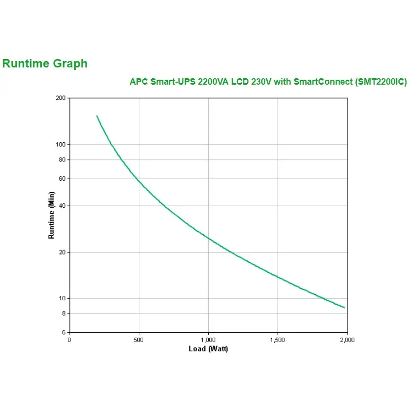 Stay always online and prevent data lossAs soon as the power fails, an APC Smart-UPS immediately supplies emergency power to all connected equipment. Because an APC UPS does this automatically, you prevent unwanted failure of, for example, a PC, server or switch. With the free APC PowerChute software, you can even have critical IT hardware shut down automatically and in a controlled manner when the battery of the UPS is almost empty. This prevents data loss, downtime and physical damage to hardware.SafetyIn addition, a Smart-UPS protects connected devices against peak voltage caused by lightning, among other things. This APC emergency power supply is ideally suited for (small) business use.Battery lifeYou can easily read the expected battery life in the runtime graph, which you can find between the product images. This makes it easy to see how long the UPS will supply emergency power at a certain load.SmartConnectOut-of-box remote UPS monitoring, free during a 6-month trial period. Using the SmartConnect Ethernet port, you can easily connect the Smart-UPS to your network and monitor it remotely via the secure APC SmartConnect cloud-based web portal*. In addition, the UPS can always be monitored via this port via EcoStruxure IT Expert (SFTWES1-DIGI).* Extend access to SmartConnect via the following licenses:1 year Standard Plan: ERWPMON1-1Y-DIGI3 years Standard Plan: ERWPMON1-3Y-DIGI1 year Advanced Plan: ERWPLUS1-1Y-DIGI3 years Advanced Plan: ERWPLUS1-3Y-DIGIPowerChuteBy connecting the UPS to a maximum of one server via a USB cable, it can automatically provide it with a shutdown signal during a prolonged power failure and thus still prevent a hard shutdown. This exact moment can be set via the free APC PowerChute Serial Edition software.Network Management CardIf you connect the UPS directly to your network via the optional APC Network Management Card (AP9640/AP9641), it can be easily managed remotely via SNMP or our remote management software Ecostruxure IT Expert (SFTWES1-DIGI). You can also automatically send a shutdown signal via the network to multiple physical and/or virtual servers. By means of the APC PowerChute Network Shutdown Software belonging to the network card, it is even possible to differentiate between the shutdown moment and the order in which this happens.Ease of useBy means of physical buttons and an LCD screen, it is possible to set and read out the basic functionalities.Extend the lifespanThe internal battery cartridge (RBC55) can be easily, safely and independently replaced by the user. This without having to switch off the APC SMT2200IC or connected equipment. This way you can easily and cheaply extend the life of the APC Smart-UPS and your equipment always stays online.Warranty extensionThe factory warranty of the SMT2200IC is 3 years, with the exception of the battery cartridge, which has a factory warranty of 2 years. Both are extended by 3 years to 6 and 5 years respectively with the APC service pack (WBEXTWAR3YR-SP-03).Switched Outlet Groups: Remote reboot and phased start-upThanks to the Switched Outlet Groups it is possible to configure a phased/delayed power-on per UPS outlet group. This reduces the peak load on the UPS and brings it closer to the constant load, which can limit oversizing of the UPS.It is also possible to reset a group of multiple UPS outlets and the equipment connected to them. If SmartConnect Advanced (ERWPLUS1-1Y-DIGI), a UPS with SmartConnect port + Ecostruxure IT Expert (SFTWES1-DIGI) or a network card (ap9640) in combination with Ecostruxure IT Expert (SFTWES1-DIGI) are used, this can even be done remotely.