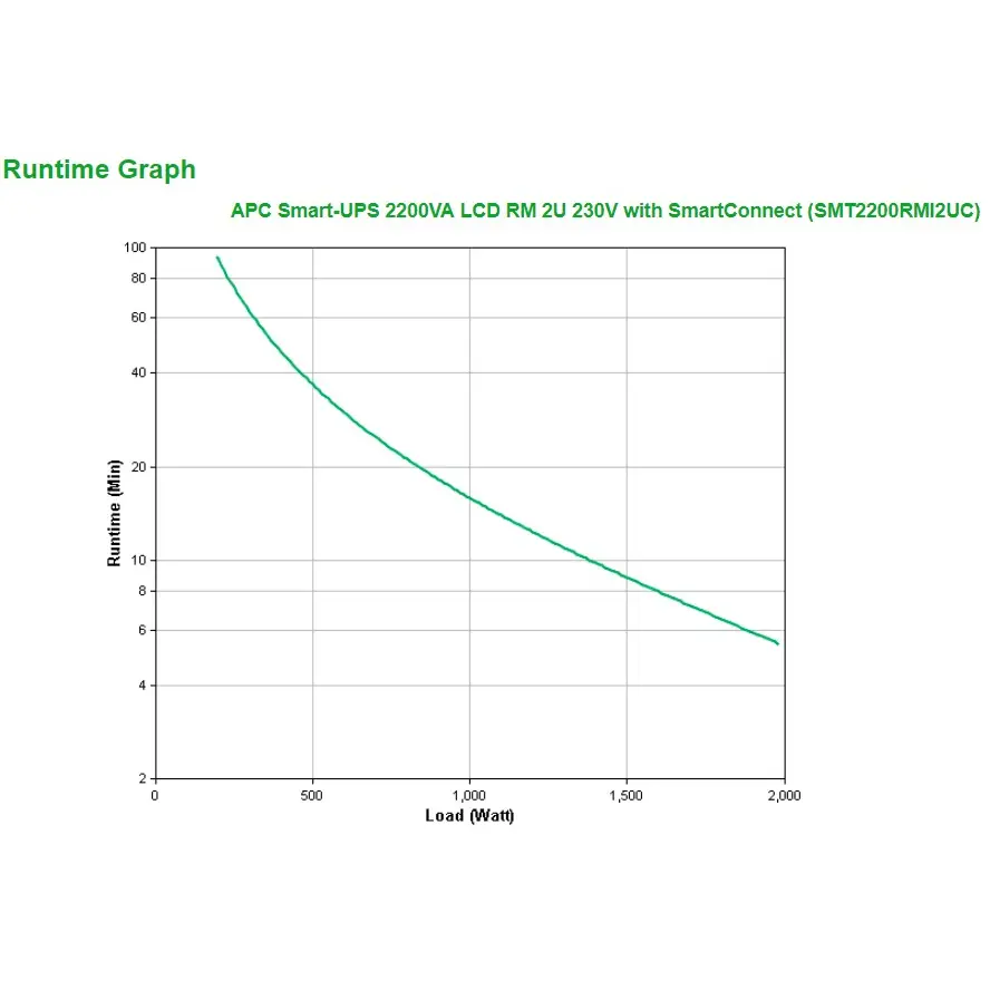 Stay always online and prevent data lossAs soon as the power goes out, an APC Smart-UPS immediately provides emergency power to all connected equipment. Because an APC UPS does this automatically, you prevent unwanted failure of, for example, a PC, server or switch. With the free APC PowerChute software you can even have critical IT hardware shut down automatically and in a controlled manner when the battery of the UPS is almost empty. This way you prevent data loss, downtime and physical damage to hardware.SafetyIn addition, a Smart-UPS protects connected devices against peak voltage caused by lightning, among other things. This APC emergency power supply is ideally suited for (small) business use.Battery lifeYou can easily read the expected battery life in the runtime graph, which you can find between the product images. You can easily see how long the UPS supplies emergency power at a certain load.SmartConnectOut-of-box remote UPS monitoring, free for a 6-month trial period. Using the SmartConnect ethernet port, you can easily connect the Smart-UPS to your network and easily monitor it remotely via the secure APC SmartConnect cloud-based web portal*. In addition, the UPS can always be monitored via this port via EcoStruxure IT Expert (SFTWES1-DIGI).* Extend access to SmartConnect through the following licenses:1 year Standard Plan: ERWPMON1-1Y-DIGI3 year Standard Plan: ERWPMON1-3Y-DIGI1 year Advanced Plan: ERWPLUS1-1Y-DIGI3 year Advanced Plan: ERWPLUS1-3Y-DIGIPowerChuteBy connecting the UPS to a maximum of one server via a USB cable, it can automatically provide it with a shutdown signal during a prolonged power outage and thus prevent a hard shutdown. This exact moment can be set via the free APC PowerChute Serial Edition software.Network Management CardIf you connect the UPS directly to your network via the optional APC Network Management Card (AP9640/AP9641), it can easily be managed remotely via SNMP or our remote management software Ecostruxure IT Expert (SFTWES1-DIGI). You can also automatically send a shutdown signal via the network to multiple physical and/or virtual servers. By means of the APC PowerChute Network Shutdown Software associated with the network card can even be differentiated in the shutdown moment and the order in which this happens.Ease of useBy means of physical buttons and an LCD screen make it possible to set and read the basic functionalities. Thanks to the included 4-post rail kit, you can easily mount the UPS in a rack.Extend the lifespanThe internal battery cartridge (RBC43) can be replaced easily, safely and independently by the user. This without having to switch off the APC SMT2200RMI2UC or connected equipment. This way you can easily and cheaply extend the lifespan of the APC Smart-UPS and your equipment always remains online.Warranty extensionThe manufacturer's warranty of the SMT2200RMI2UC is 3 years, with the exception of the battery cartridge, which has a 2-year manufacturer's warranty. Both are extended by 3 years to 6 and 5 years respectively with the APC service pack (WBEXTWAR3YR-SP-04).Switched Outlet Groups: Remote reboot and phased start-upThanks to the Switched Outlet Groups, it is possible to configure a phased/delayed power-on per UPS outlet group. This reduces the peak load on the UPS and brings it closer to the constant load, which limits oversizing of the UPS.It is also possible to reset a group of multiple UPS outputs and the equipment connected to them. If SmartConnect Advanced (ERWPLUS1-1Y-DIGI) is used, a UPS with SmartConnect port + Ecostruxure IT Expert (SFTWES1-DIGI) or a network card (ap9640) in combination with Ecostruxure IT Expert (SFTWES1-DIGI), this is even possible at a distance.