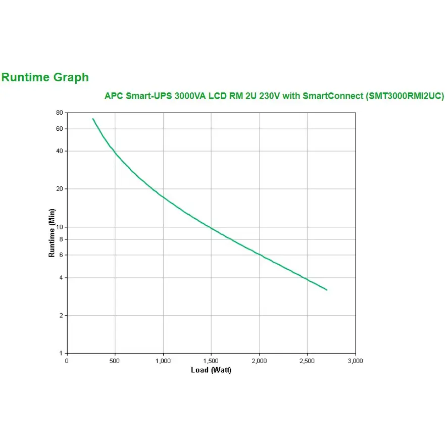 Always stay online and prevent data lossAs soon as the power goes out, an APC Smart-UPS immediately provides emergency power to all connected equipment. Because an APC UPS does this automatically, you prevent unwanted failure of, for example, a PC, server or switch. With the free APC PowerChute software you can even have critical IT hardware shut down automatically and in a controlled manner when the battery of the UPS is almost empty. This way you prevent data loss, downtime and physical damage to hardware.SafetyIn addition, a Smart-UPS protects connected devices against peak voltage caused by lightning, among other things. This APC emergency power supply is ideally suited for (small) business use.Battery lifeYou can easily read the expected battery life in the runtime graph, which you can find between the product images. You can easily see how long the UPS supplies emergency power at a certain load.SmartConnectOut-of-box remote UPS monitoring, free for a 6-month trial period. Using the SmartConnect ethernet port, you can easily connect the Smart-UPS to your network and easily monitor it remotely via the secure APC SmartConnect cloud-based web portal*. In addition, the UPS can always be monitored via this port via EcoStruxure IT Expert (SFTWES1-DIGI).* Extend access to SmartConnect through the following licenses:1 year Standard Plan: ERWPMON1-1Y-DIGI3 year Standard Plan: ERWPMON1-3Y-DIGI1 year Advanced Plan: ERWPLUS1-1Y-DIGI3 year Advanced Plan: ERWPLUS1-3Y-DIGIPowerChuteBy connecting the UPS to a maximum of one server via a USB cable, it can automatically provide it with a shutdown signal during a prolonged power outage and thus prevent a hard shutdown. This exact moment can be set via the free APC PowerChute Serial Edition software.Network Management CardIf you connect the UPS directly to your network via the optional APC Network Management Card (AP9640/AP9641), it can easily be managed remotely via SNMP or our remote management software Ecostruxure IT Expert (SFTWES1-DIGI). You can also automatically send a shutdown signal via the network to multiple physical and/or virtual servers. By means of the APC PowerChute Network Shutdown Software associated with the network card can even be differentiated in the shutdown moment and the order in which this happens.Ease of useBy means of physical buttons and an LCD screen make it possible to set and read the basic functionalities. Thanks to the included 4-post rail kit, you can easily mount the UPS in a rack.Extend the lifespanThe internal battery cartridge (RBC43) can be replaced easily, safely and independently by the user. This without having to switch off the APC SMT3000RMI2UC or connected equipment. This way you can easily and cheaply extend the lifespan of the APC Smart-UPS and your equipment always remains online.Warranty extensionThe manufacturer's warranty of the SMT3000RMI2UC is 3 years, with the exception of the battery cartridge, which has a 2-year manufacturer's warranty. Both are extended by 3 years to 6 and 5 years respectively with the APC service pack (WBEXTWAR3YR-SP-04).Switched Outlet Groups: Remote reboot and phased start-upThanks to the Switched Outlet Groups, it is possible to configure a phased/delayed power-on per UPS outlet group. This reduces the peak load on the UPS and brings it closer to the constant load, which limits oversizing of the UPS.It is also possible to reset a group of multiple UPS outputs and the equipment connected to them. If SmartConnect Advanced (ERWPLUS1-1Y-DIGI) is used, a UPS with SmartConnect port + Ecostruxure IT Expert (SFTWES1-DIGI) or a network card (ap9640) in combination with Ecostruxure IT Expert (SFTWES1-DIGI), this is even possible at a distance.