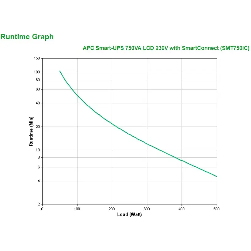 Stay always online and prevent data lossAs soon as the power goes out, an APC Smart-UPS immediately provides emergency power to all connected equipment. Because an APC UPS does this automatically, you prevent unwanted failure of, for example, a PC, server or switch. With the free APC PowerChute software you can even have critical IT hardware shut down automatically and in a controlled manner when the battery of the UPS is almost empty. This way you prevent data loss, downtime and physical damage to hardware.SafetyIn addition, a Smart-UPS protects connected devices against peak voltage caused by lightning, among other things. This APC emergency power supply is ideally suited for (small) business use.Battery lifeYou can easily read the expected battery life in the runtime graph, which you can find between the product images. You can easily see how long the UPS supplies emergency power at a certain load.SmartConnectOut-of-box remote UPS monitoring, free for a 6-month trial period. Using the SmartConnect ethernet port, you can easily connect the Smart-UPS to your network and easily monitor it remotely via the secure APC SmartConnect cloud-based web portal*. In addition, the UPS can always be monitored via this port via EcoStruxure IT Expert (SFTWES1-DIGI).* Extend access to SmartConnect through the following licenses:1 year Standard Plan: ERWPMON1-1Y-DIGI3 year Standard Plan: ERWPMON1-3Y-DIGI1 year Advanced Plan: ERWPLUS1-1Y-DIGI3 year Advanced Plan: ERWPLUS1-3Y-DIGIPowerChuteBy connecting the UPS to a maximum of one server via a USB cable, it can automatically provide it with a shutdown signal during a prolonged power outage and thus prevent a hard shutdown. This exact moment can be set via the free APC PowerChute Serial Edition software.Network Management CardIf you connect the UPS directly to your network via the optional APC Network Management Card (AP9640/AP9641), it can easily be managed remotely via SNMP or our remote management software Ecostruxure IT Expert (SFTWES1-DIGI). You can also automatically send a shutdown signal via the network to multiple physical and/or virtual servers. By means of the APC PowerChute Network Shutdown Software associated with the network card can even be differentiated in the shutdown moment and the order in which this happens.Ease of useBy means of physical buttons and an LCD screen make it possible to set and read the basic functionalities.Extend the lifespanThe internal battery cartridge (RBC48) can be replaced easily, safely and independently by the user. This without having to switch off the APC SMT750IC or connected equipment. This way you can easily and cheaply extend the lifespan of the APC Smart-UPS and your equipment always remains online.Warranty extensionThe manufacturer's warranty of the SMT750IC is 3 years, with the exception of the battery cartridge, which has a 2-year manufacturer's warranty. Both are extended by 3 years to 6 and 5 years respectively with the APC service pack (WBEXTWAR3YR-SP-02).Included in the box1x SMT750IC1x USB cable 2 meters2x C13 to C14 power cord 2 meters1x Software CD with PowerChute Serial Edition1x Cat5E ethernet cable1x Documentation CD