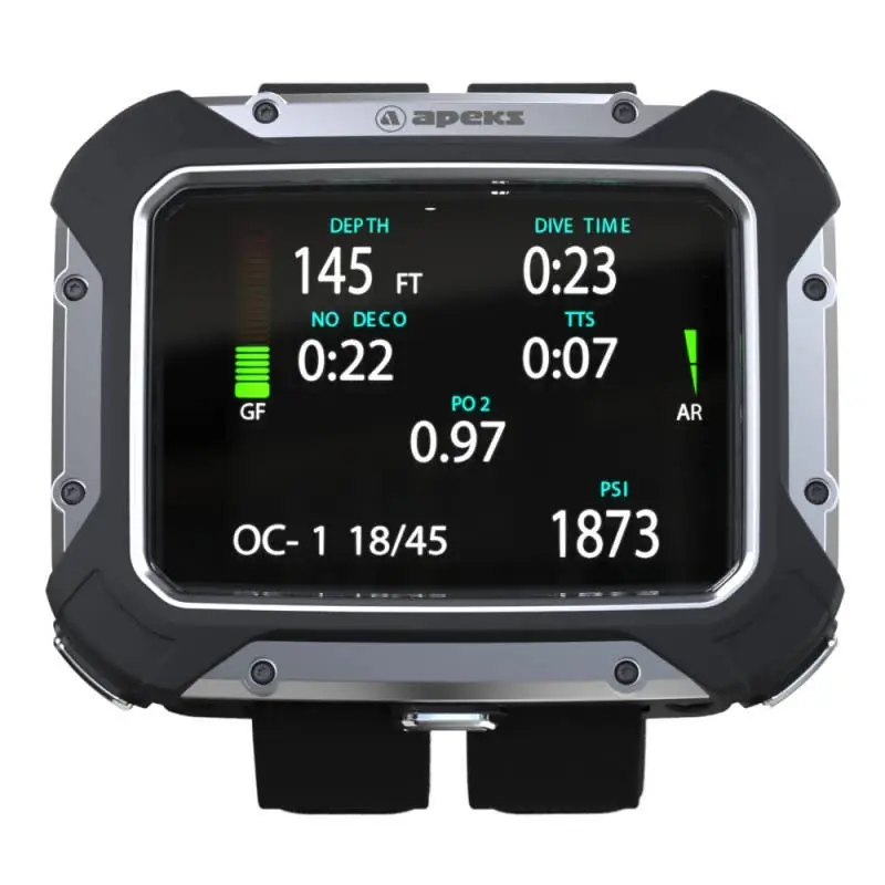 The Apeks DSX Dive Computer is a cutting-edge, multifunctional device designed for serious technical divers and those seeking top-tier instrumentation to elevate their diving experience. Engineered with Apeks' renowned durability, the DSX is equipped with advanced features, including sidemount and closed-circuit rebreather (CCR) modes, induction or cable charging, and the capability to manage up to six gas mixes. This robust dive computer is ready to accompany you on your next underwater adventure.