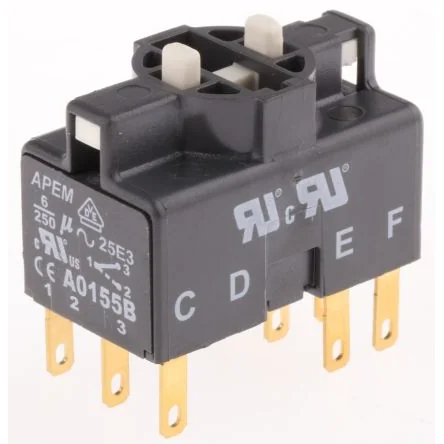 A01 ; A02 Series Switch Blocks. Apem A01 and A02 series switch blocks are part of the modular series. This allows them to be used with many different types of Apem switch operators. Available are rotary lever, Key switches and push buttons. The Apem modular series allows great flexibility for the designer to get the switch they need.. A01 series switch blocks have 2.8mm solder/quick connect terminals A02 series switch blocks have M3 screw terminals