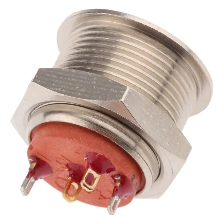 AV Series Security Pushbutton Switches. Brought to you by Apem, this Security Pushbutton Switch features a mechanical stop which protects the contact mechanism and provides a high degree of impact resistance. With a robust Polybutylene housing, nickel plated brass bushings and silver-plated contacts, this AV series security switch is designed for reliability and durability over a long length of service. Features and Benefits:. • IP54 Environmental Protection • Momentary switch operation • Mechanical life of 100000 Cycles. Available in this range:. • Stock No: ; 278-1133 278-1133 is a 16mm screw terminal curved push-button switch • Stock No: ; 278-1149 278-1149 is a 16mm screw terminal flat push-button switch • Stock No: ; 190-0715 190-0715 is a 16mm solder terminal flat push-button switch • Stock No: ; 179-0906 179-0906 is a 19mm screw terminal curved push-button switch • Stock No: ; 179-0912 179-0912 is a 19mm screw terminal flat push-button switch • Stock No: ; 190-0721 190-0721 is a 19mm solder terminal illuminated push-button switch (Red) • Stock No: ; 174-6381 174-6381 is a 22mm screw terminal curved push-button switch • Stock No: ; 179-0899 179-0899 is a 22mm screw terminal flat push-button switch