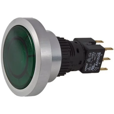 APEM Illuminated Push Button Switch, Momentary, Panel Mount, 30mm Cutout, DPDT, Green LED, IP65 - A9PFA1Y2EK2