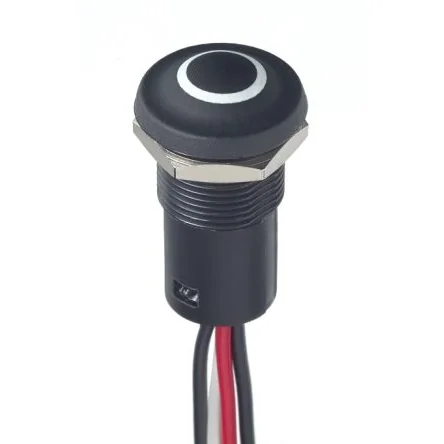 Momentary illuminated push button switch with white LED, designed for panel mount applications.