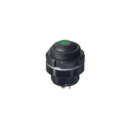 Reliable momentary push button switch with green LED, perfect for panel mounting.