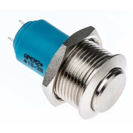 AV Series Anti-vandal push-button switches. From Apem, this AV series anti-vandal switch is robust and durable, boasting crush-proof impact resistance and an anti-jamming construction. With gold-plated silver contacts and a choice of stainless steel or nickel plated brass bushing, this AV series anti-vandal switch also features a high degree protection and a long mechanical life. Features and Benefits:. • Electrical life of 40,000 cycles • Mechanical life of 200,000 cycles • Flat 16mm actuator • ON/OFF electrical function • Contact status display signal. Available in this Range:. • Stock No: ; 225-583 225-583 is a push-button switch with a stainless steel bushing and actuator. • Stock No: ; 498-0837 498-0837 is a push-button switch with a nickel plated brass bushing and actuator.