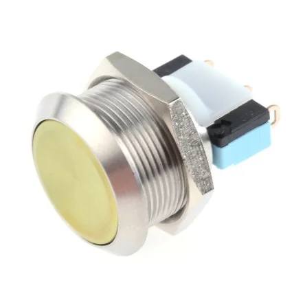 Robust momentary push button switch designed for panel mounting with IP65 protection.