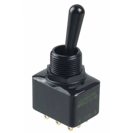 APEM's DPST Toggle Switch offers reliable On-(On) operation with solder lug terminals for easy panel mounting.