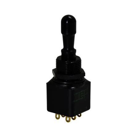 APEM's DPST Toggle Switch offers On-On-On operation with solder lug terminals for reliable panel mounting.