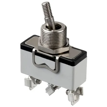 APEM Toggle Switch with SPDT configuration, suitable for power applications up to 15A.