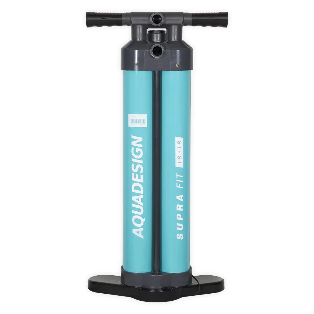 The Aquadesign SUPRA FIT 2 x 1.8L High-Pressure Pump is engineered for rapid inflation of stand-up paddle boards and inflatable kayaks. Its innovative air system delivers twice the speed of traditional double-action pumps, enhancing efficiency and user experience.