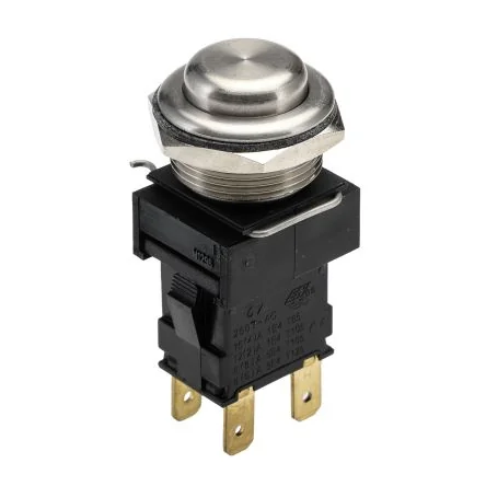 This momentary push button switch offers DPDT configuration and IP66 protection for reliable panel mounting.