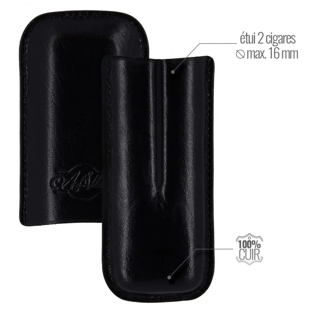 | Case for 2 cigars art et volutes maceo black | Minimum length: 15 cm | Maximum length: 21 cm | Width: 7 cm | Thickness: 2.5 cm |