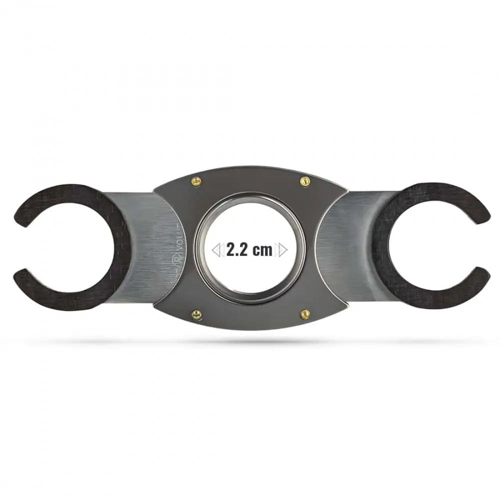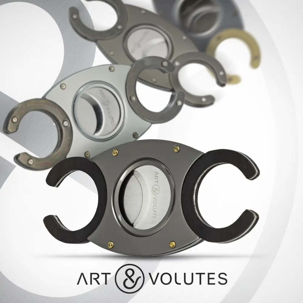an art et volutes double blade cigar cutter of very good quality with which you can cut the head of your cigar with precision. thin and light it will slip easily into a jacket or trouser pocket to always have it handy.