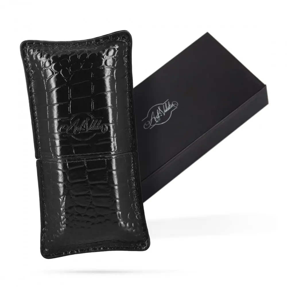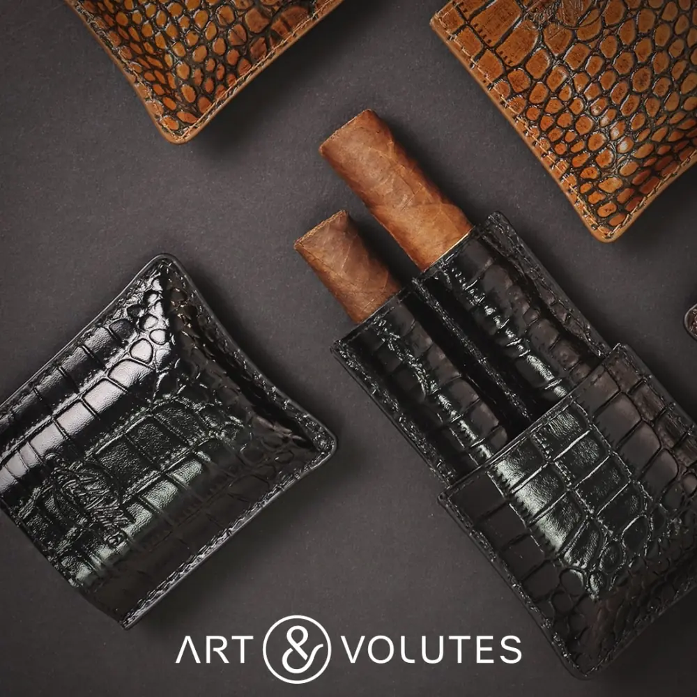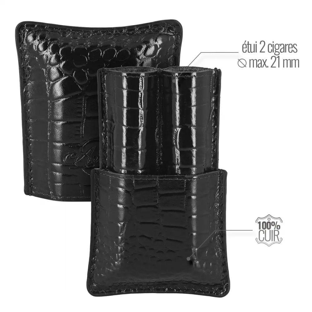 cigar case for two cigars signed art et volutes. sheath entirely in black crocodile-style leather. for two cigars of max. 21mm.