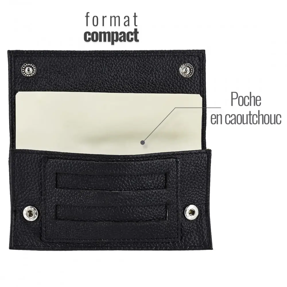 the art and volutes naco quality leather tobacco pouch stands out for its lightness and reduced size which allows it to be carried anywhere. made with quality materials it will keep your tobacco in a flap pocket also equipped with gussets for easy opening. the leather paper slot has a very practical double window to take a sheet without taking out the notebook.
