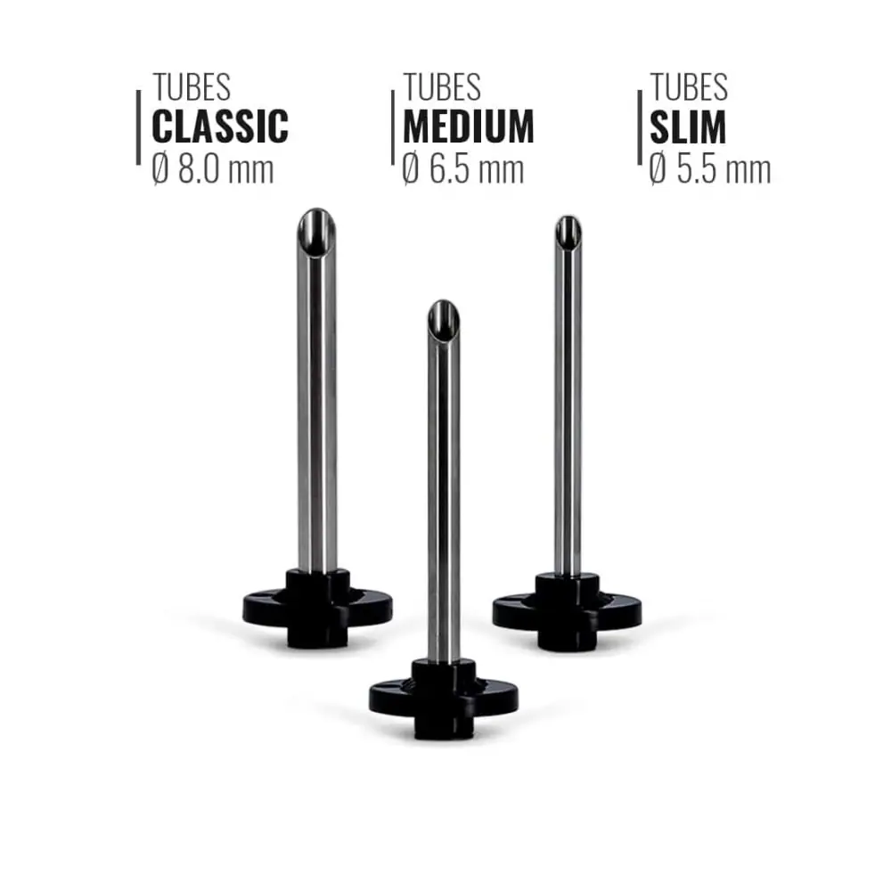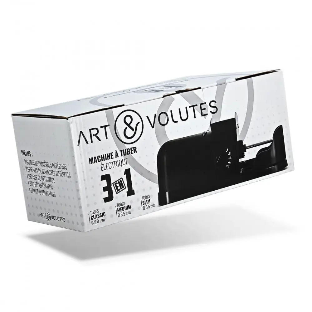 tuber machine for slim compact or standard cube from the french brand art et volutes. here is the most versatile electric cigarette tuber on the market. this electric tuber machine will allow you to tube classic medium and slim cigarettes thanks to its wide variety of accessories provided. indeed you will not be forced to use only one range of cigarette tubes. this will be delivered to you complete with a cleaning rod 3 nozzles for tubes and 3 endless screws.