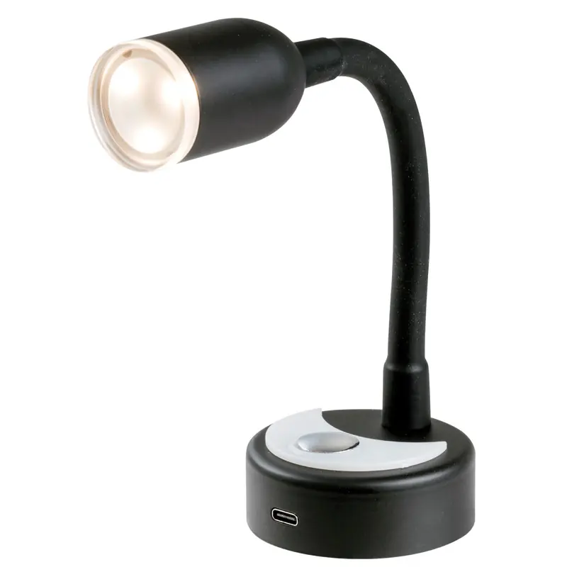 Adjustable LED spotlight with USB-C port and dimmer for optimal lighting control.