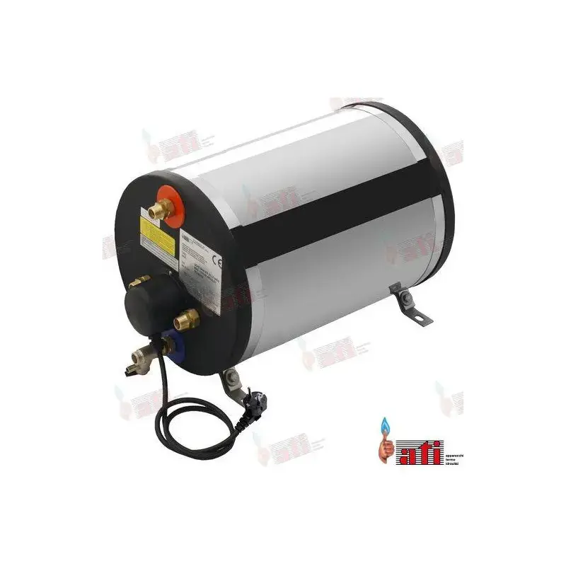 Water heater. With expanded polyurethane thermal insulation (free of HFC, CFC, HCFC and HFA). Electric resistance and available in 500, 800 and 1200 W. Allows the production of hot water with the motor stopped. Adjustable and safety thermostat. Safety and non-return valve. Power cable included. AISI 316 L stainless steel tank. Anti-corrosive treatment of decapadO. Heat exchanger in AISI 316L stainless steel. The large exchange surface ensures an abundant production of sanitary hot water. Coating in pre-painted aluminum. Fixing system in AISI 304 stainless steel. Discharge connection.