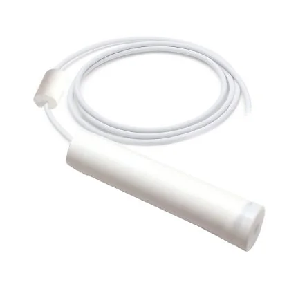 This small tubular float level sensor is equipped with a TEFLON cable and a specially designed PTFE housing for extremely aggressive liquids, such as for example sulfuric acid and very hot liquids reaching temperatures up to 125°C. The TUBA 125 C level sensor has a ball inside a sealed polypropylene cylinder that will activate a microswitch according to its position. This principle is extremely reliable. The small diameter of this float (Ø 40 mm) allows its introduction by small holes often placed on the vertical walls of the tanks.Maximum pressure 2 bar Maximum temperature 125°C Protection index IP68