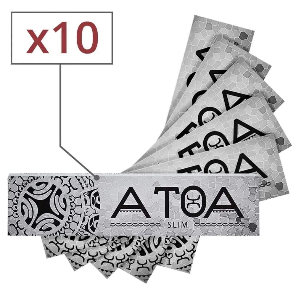 the atoa slim x 10 rolling papers are characterized by long sheets of superior quality. these are designed to bring you great satisfaction when gluing but also when riding. their texture is particularly fine and rigid which will offer you great flexibility in addition to great resistance.
