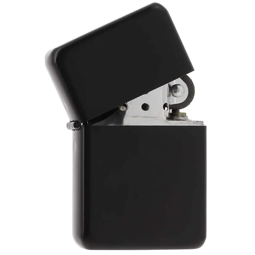 a black lacquered gasoline lighter with a simple look but with optimal efficiency. small in size this lighter will slip into a pocket to be useful when needed.