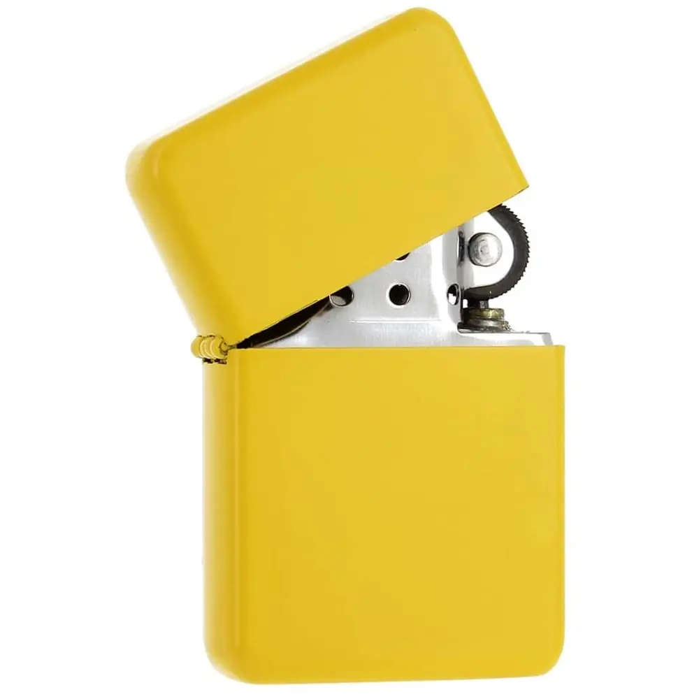 small yellow refillable petrol lighter. possibility of engraving on both sides.