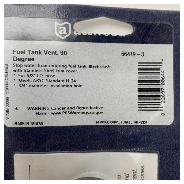 - Choose the Attwood Marine Fuel Tank Vent for reliable and safe ventilation of your fuel tank. Order today and benefit from the durability and superior performance of Attwood.