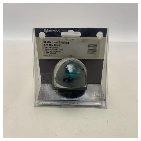 The Atwood Quasar 3830G7 green starboard navigation light is essential for safe sailing in the dark. This high-quality light ensures that your boat is clearly visible to other vessels, preventing collisions.