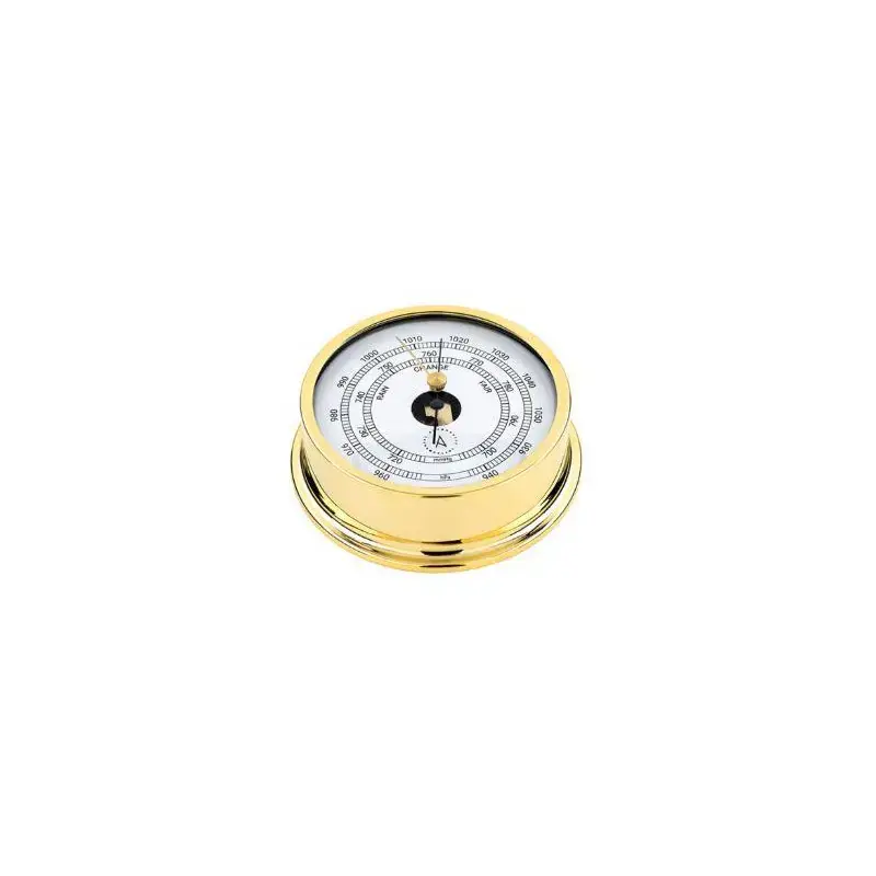 The Golden Aneroid Barometer 120mm by Autonautic Instrumental offers accurate weather measurement with a sturdy base and fixing element.