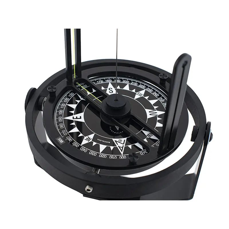 Large vessels are equipped with permanently mounted gauges or those that can be mounted on deck. Smaller in size, this portable alidade sextant performs the same functions.