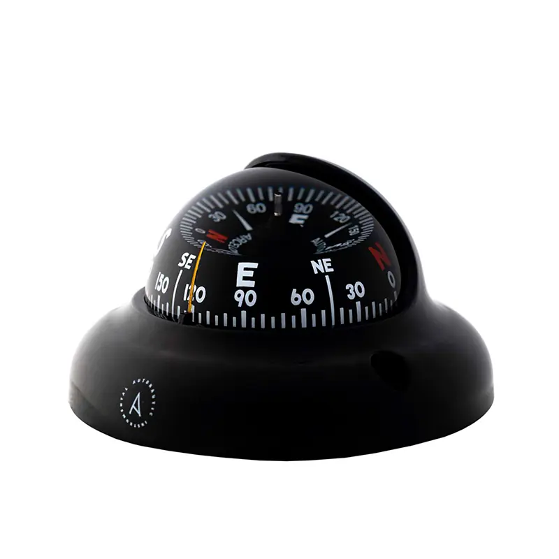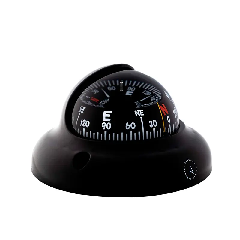 This is our smallest compass and ideal for use on a RIB or auxiliary boat. This surface compass easily mounts on a flat surface, so no drilling is required. It is well-dampened to cope with the widest range of movement on a RIB or boat and features a spherical card that is easy to read whether standing or sitting.