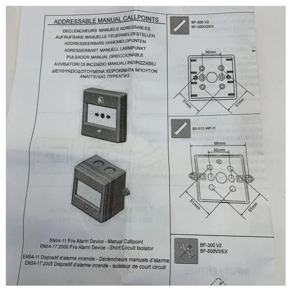 - Protection: The manual call point has a high protection rating of IP52 (IP66 with cover), making it highly resistant to water and dust for outdoor use.