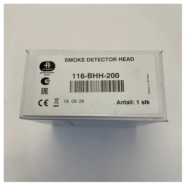 The Autronica 116-BHH-200 optical smoke detector head is an advanced and reliable choice for detecting smoke and ensuring safety in various environments. This detector uses a modern optical detection chamber to signal fires early, particularly smouldering fires that release visible smoke. The superior sensitivity and stability ensure a minimal chance of false alarms.