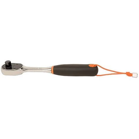 High-quality Bahco 1/2 in square ratchet with safety bracket for secure operation at height.