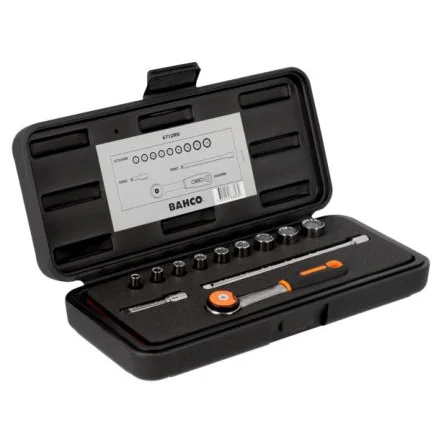 This Bahco 1/4 in Bit Socket Set features a durable ratchet for efficient fastening.
