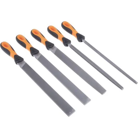 Ergonomic 5-piece file set designed for efficient filing and deburring.