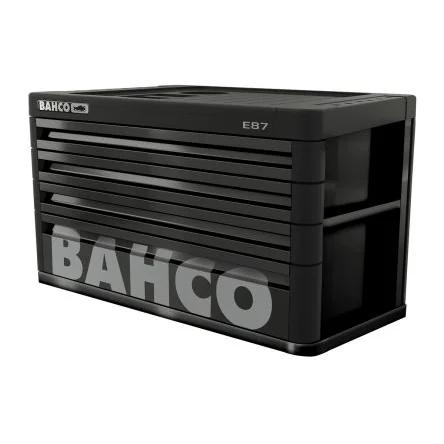 Bahco Wheeled Roller CabinetThe Bahco E77 storage hub is a trolley type having roller wheels. It combines top-of-the-line safety with an innovative design to meet the needs of people working in heavy-duty environments. Its exclusive style and ingenious safety features, from anti-tilting drawers with individual shock-protecting bumpers to precision wheels with a cutting-edge dual-braking system make it a premium solution. The Fit&Go system provides ready to use foam inlays with tools for your drawers. This trolley has a length of 510mm, a width of 693mm and a height of 406mm.Features and Benefits• Has four drawers • Fully opening drawers have individual shock-protecting corner bumpers • Individual shock-protecting corner bumpers defend against unexpected collisions • Long drawer rails with ball bearings • Pivoting latching system keep drawers shut automatically even when the trolley moves • Scratchproof powder coating available in black colour • Solid steel dual-walled case construction • The unique 1DAAT-system prevents the trolley from falling over unexpectedly • Wheels with dual-braking system. Xpand accessories using side perforated panel to make it truly modular system