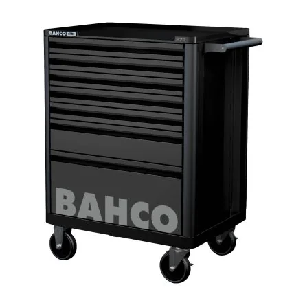 Bahco Tool Chests & CabinetsThe Bahco is a solid steel-wheeled roller cabinet with 7 drawers. It has round shock-absorbing corner bumpers for safety. This product is designed with the new locking system with a round key for optimal safety in every working environment. A long ball bearing slides and an integrated click closing system to stop the drawers from opening during transport. This trolley can carry capacity of 600kg.Features and BenefitsLength of 510mm, width of 693mm and height of 965mm Robust wheels providing high stability and making the trolley easy to drive even on irregular floors The rubber external wheels do not mark the floor.Round shape avoids sharp and cutting edges when working aside from the trolley The compact key holder contains 2 keys and it is made of composite providing.PE (Gloss) highly resistant to scratches and blows Long lasting adherence. Even in the Nordic sea for 10 years Double wall frame Open drawers without tilting risk Anti-theft round locking systemApplicationsIndustries Construction sites