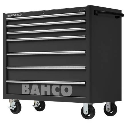 Bahco Wheeled Roller CabinetThe Bahco C75 classic tool is trolley type having roller wheels. This trolley has a robust and sturdy design with rounded corners to ensure maximum protection without sharp edges. The Safe and smart Lock&Go system prevent the stainless-steel drawers from opening when the tool trolley moves. This tool can bear large capacity due to heavy duty construction. It has a length of 501mm, a width of 1016mm and height of 985mm.Features and Benefits• Has seven drawers • Anti-theft round locking system • Double-walled reinforced frame with extra welding points • Fully opening drawers equipped with ball-bearing sliders • Smooth and silent rubber wheels ensure maximum stability • The inside and outside of the case and drawers have a scratchproof and anti-rust powder coating • Resistant to scratch with powder coating available in black colour • Accessories availableApplications• Storage of tools