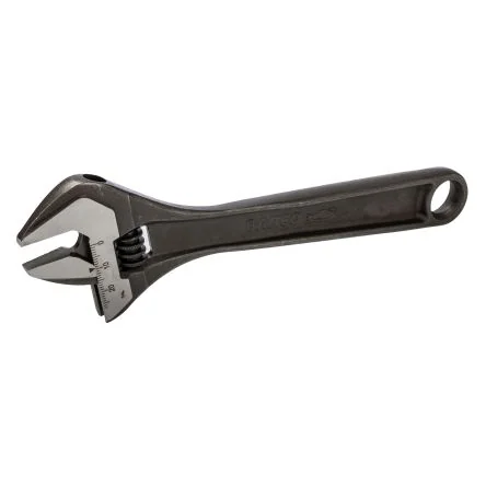 This Bahco Adjustable Spanner features a robust metal handle and a 27mm jaw capacity for versatile use.