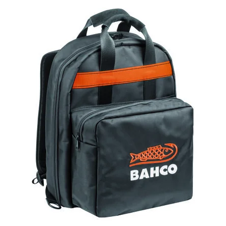 Bahco Professional Tools Backpack. The best way of storing and transporting tools is using specially designed bags that feature easy-access compartments in a variety of sizes and are made from extra-durable materials. The heavy-duty, Bahco backpack is made from a combination of 600 and 1680 denier polyester fabric materials to ensure safe and long life service. It has a lot to offer professionals with multiple internal pockets for an assortment of tools and accessories and comfortable adjustable shoulder straps for optimum weight distribution. The backpack also features a specially designed padded compartment for laptop or tablet. Reflective bands fitted at the front of the backpack ensure additional safety in a low light situation. Backpacks are available in two sizes: Small 3875-BP1 RS Stock no ; 788-3887 788-3887 Large 3875-BP2 RS Stock no ; 788-3896 788-3896 Features ; Benefits: Multiple inner compartments including a padded compartment for a laptop All-around polypropylene strap for maximum weight support Zip closed and secured by hard-wearing safety straps Quick release attachments External pockets Typical Application: Tool Bags and Tool Backpacks are commonly used by professionals or DIY enthusiast for storing and transporting the required equipment. Specially designed compartments and durable materials guarantee a safe and comfortable operation for a long period of time. These type of bags are usually used by: Plumbers Electricians Car mechanics Carpenters Builders Gas Engineers FAQs: Is this backpack weather-proof? This bag is made from a combination of 600 denier and 1680 denier polyester fabrics that guarantee a high level of water resistance. However, it doesn't mean the backpack is fully water protected and cannot be submerged. Is this backpack lockable? No, this backpack doesn't feature any locking mechanism Does this tool backpack come with a warranty? Yes, like all other Bahco products this bag comes with a standard manufacturer's warranty. NOTE: No Tools are supplied with this bag. Tools are shown for reference only.