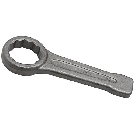 DIN 7444. Sledge Hammer Ring Spanner (7444SG). Short profiled handle with heavy duty striking end. For heavy industrial applications and ideal for work in areas such as shipyards and the rail industry. Ring ended Forged Steel construction Steel grey finish