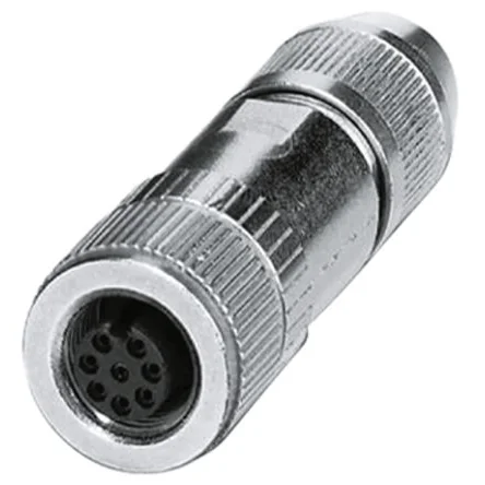 Reliable M12 female connector with 8 contacts, designed for secure automotive applications.