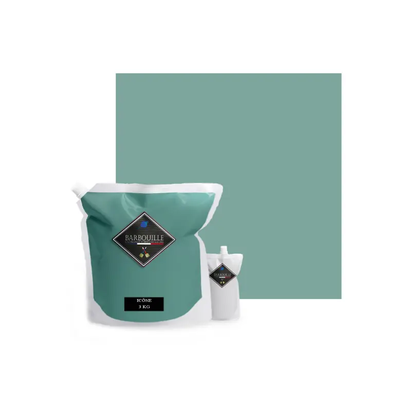 The BARBOUILLE matte two-component epoxy paint/resin - For PVC laminated tiles and ceramics - 3kg - Icon Green is the ideal product for renovation and home staging. This water-based paint/resin has multiple properties and is suitable for use on all types of tiles and ceramics as well as on all blocked surfaces such as laminated melamine, PVC, and glass. It is also suitable for woodwork and old floors like floorboards or parquet, as well as on screeds and levelling compounds. This jade green will give you the feeling of being immersed in calm water. This resin paint is very easy to use, durable, and offers a silky smooth finish.