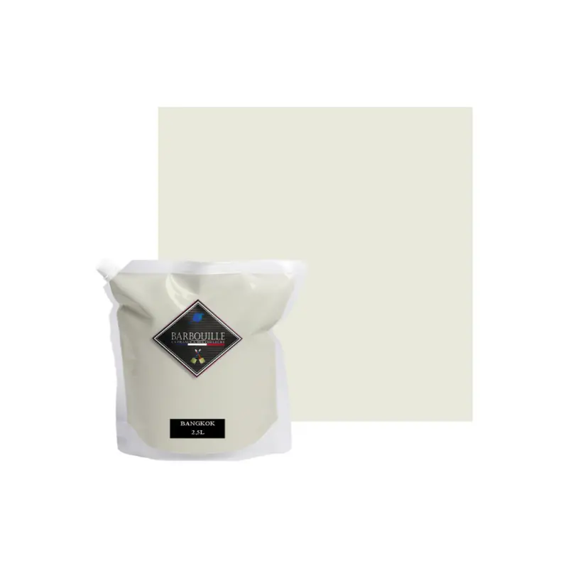 The washable satin acrylic paint BARBOUILLE - For walls, ceilings, furniture, and wood - 2.5L - White Ecce homo is ideal for indoor use in all rooms of the house for furniture or woodwork as well as for outdoor use. It has the advantage of being made from a washable formulation that allows you to clean your walls and ceilings without the risk of damage. The application of the paint is designed to be very simple, aimed at minimising the risk of touch-ups and preventing dusting. Halfway between a matte and glossy finish, this satin paint is distinguished by its slightly shiny effect that allows for good light reflection. A perfect alternative to traditional white, this Bangkok white with a greyish tint has become just as essential. Made in France, this paint is eco-friendly and certified carbon neutral.